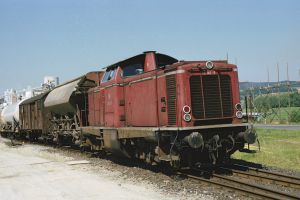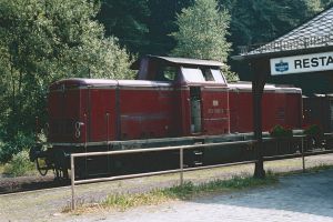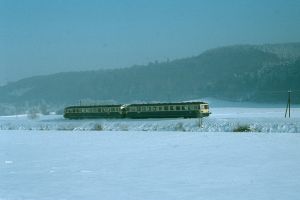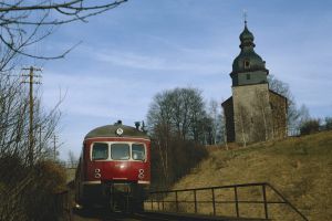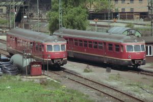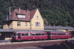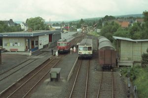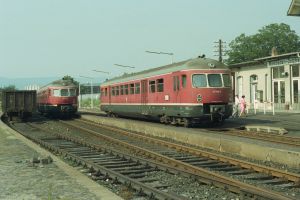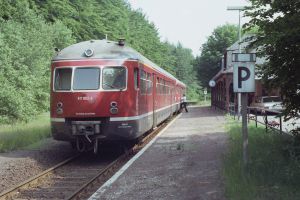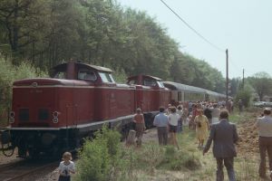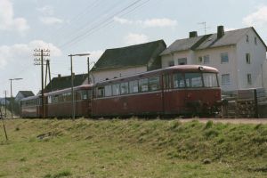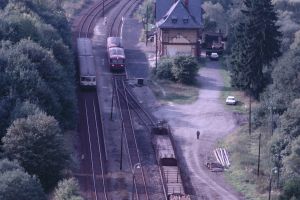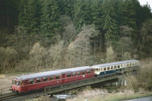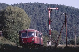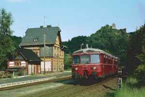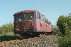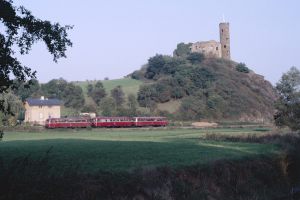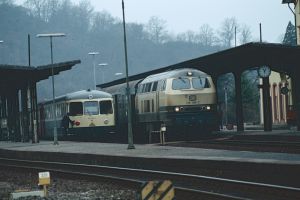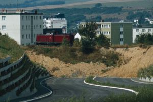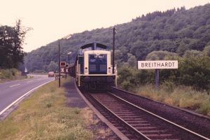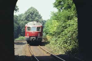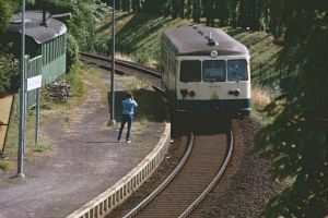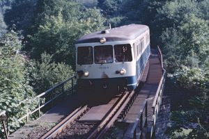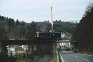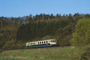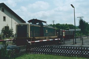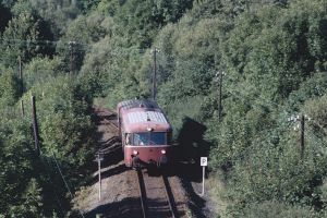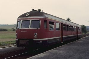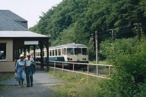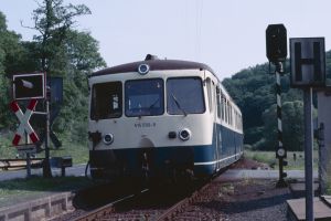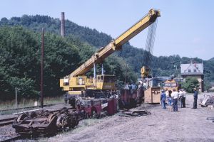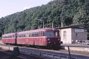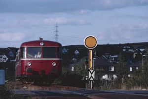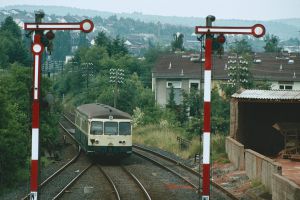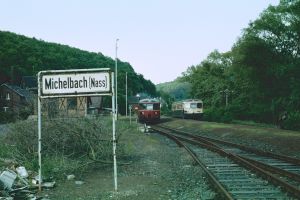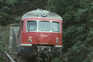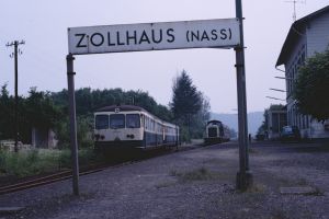 Ein schwarzer Tag für die Aartalbahn war der 22. Juli 1985, als zwischen Breithardt und Hohenstein 515 574 und 211 171 in einer uneinsehbaren Kurve zusammen stießen. 211 171 wurde nach Limburg geschleppt, der Triebwagen schaffte es nur noch nach Hohenstein und wurde dort verschrottet. Wenn ich das Datum richtig notiert habe entstand die Aufnahme zwei Tage nach dem Unfall. Es ist kaum noch etwas vom Triebwagen zu sehen