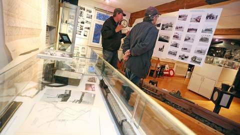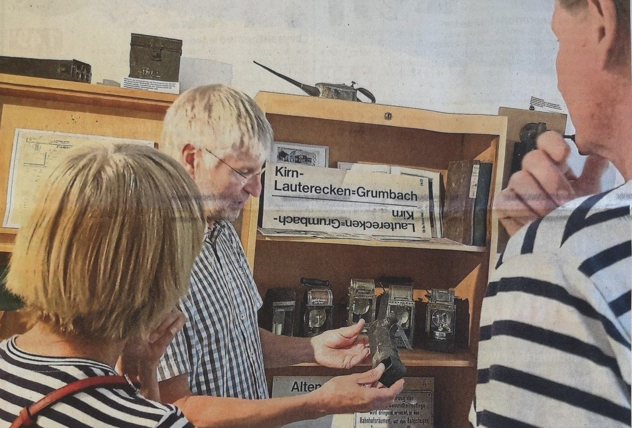 Hausherr Detlef Dittmann erklärte die meist historischen Ausstellungsstücke. Im Mittelpunkt stand natürlich die Geschichte der inzwischen stillgelegten Glantalbahn. Detlef Dittmann wusste viele Anekdoten zu berichten. Bei dem Foto, das den einstigen Schalterraum des Rehborner Bahnhofs zeigt, erinnerte sich Staatssekretär a.D. Körper an seine Schulzeit. Fritz durfte bis zum Abitur mit der Bahn ins Paul-Schneider-Gymnasium nach Meisenheim fahren.