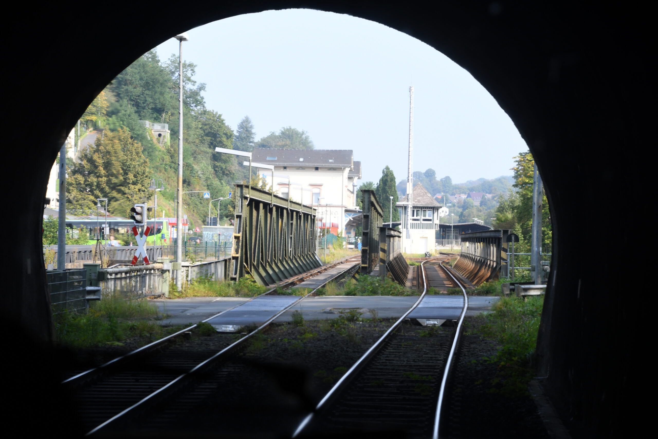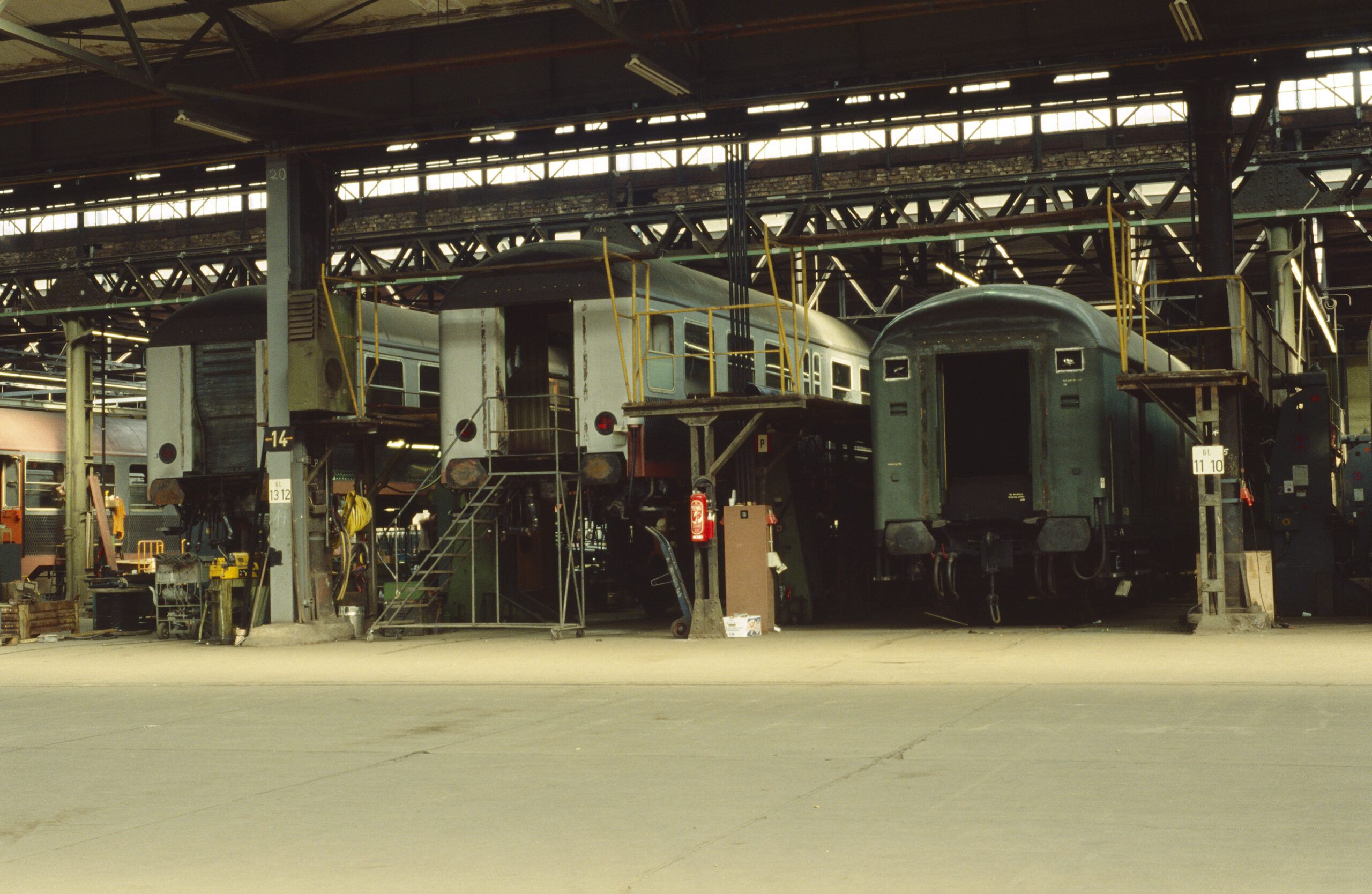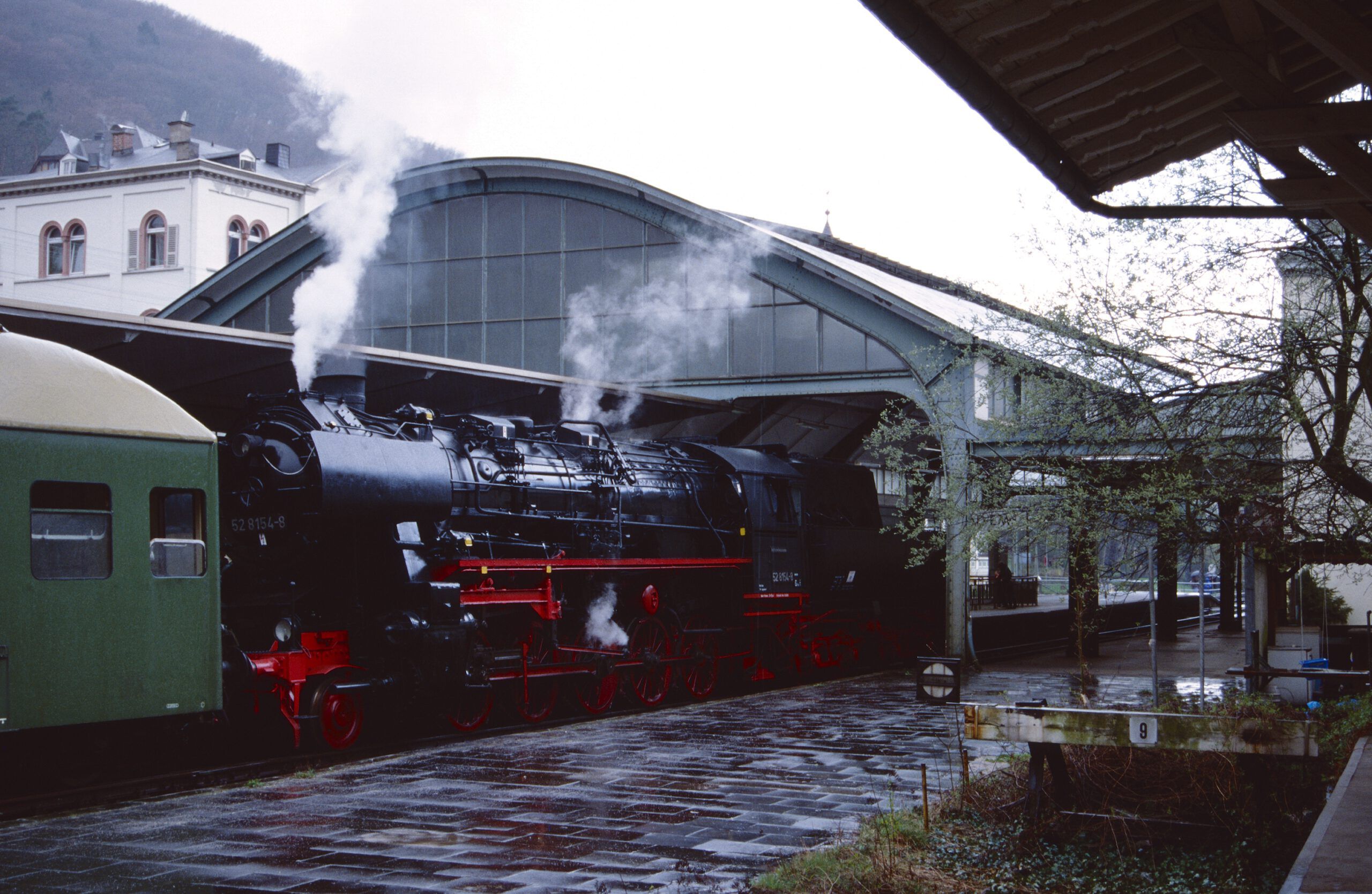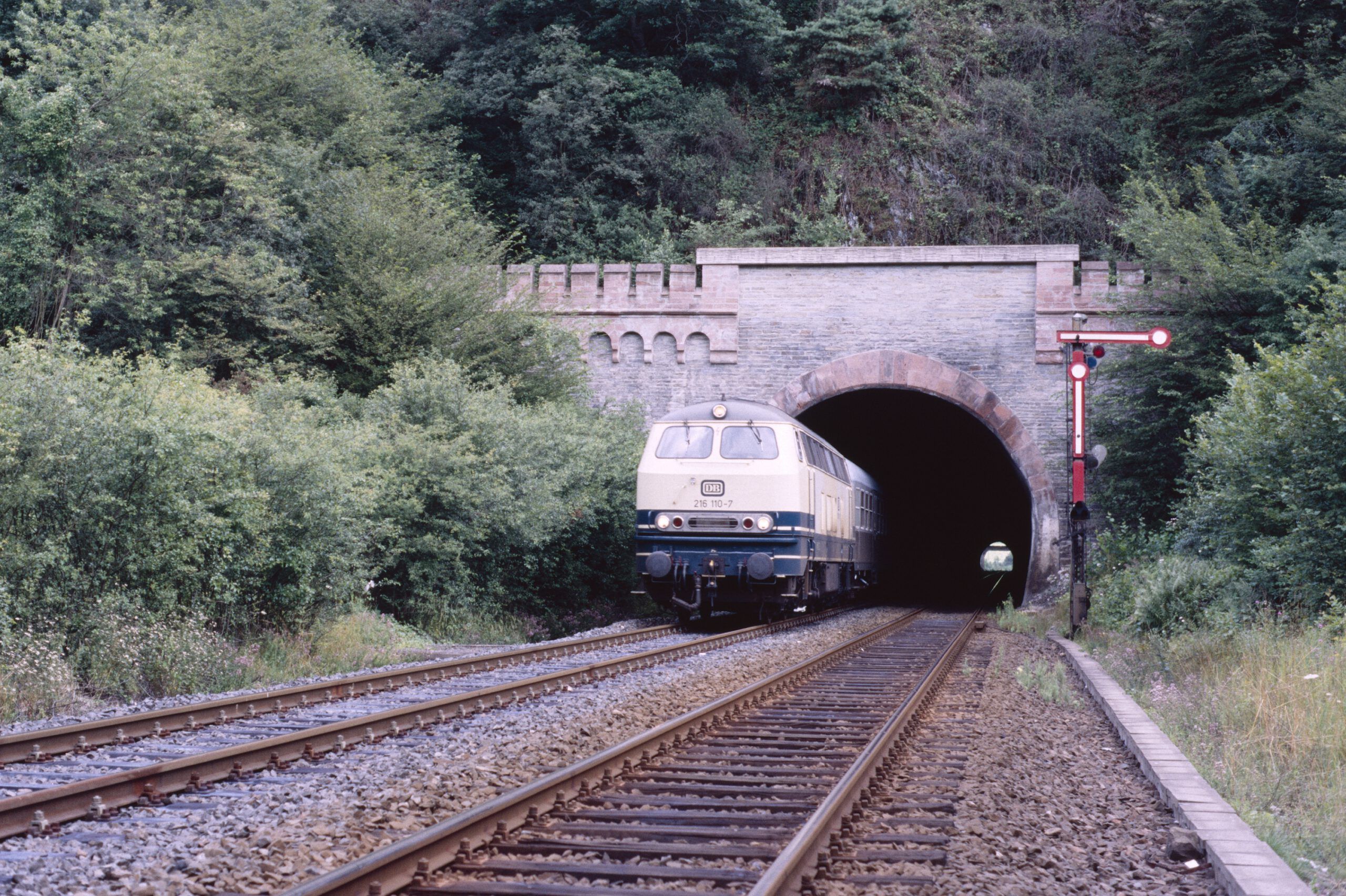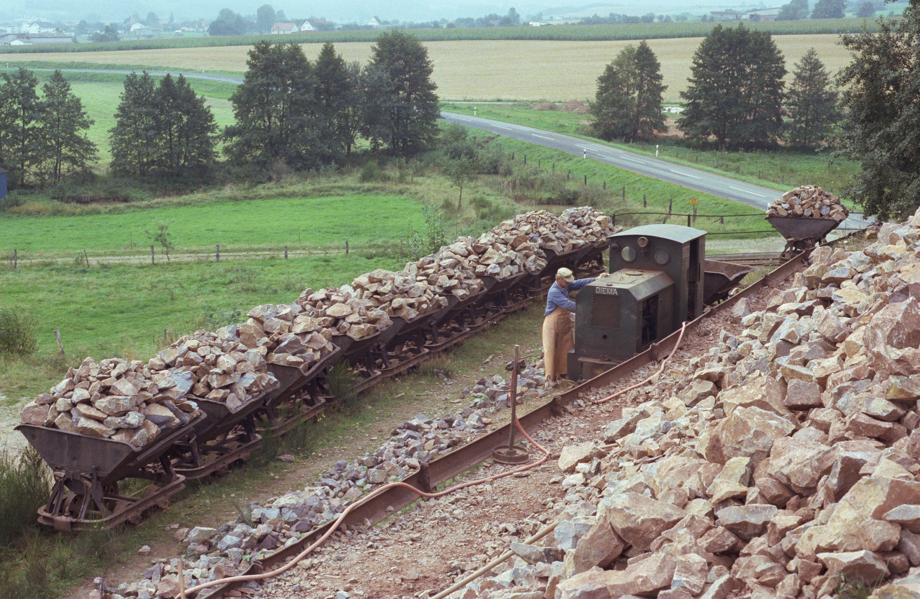 Im Lahntal waren in den 1980er Jahren recht häufig Wagenkästen alter Güterwaggons neben der Strecke aufgestellt. So auch dieser Wagenkasten vermutlich eines ehemaligen G 10-Güterwaggons neben dem Einfahr-Vorsignal von Laurenburg, an dem am 16. Mai 1988 diese dreiteilige Schienenbusgarnitur vorbei knattert