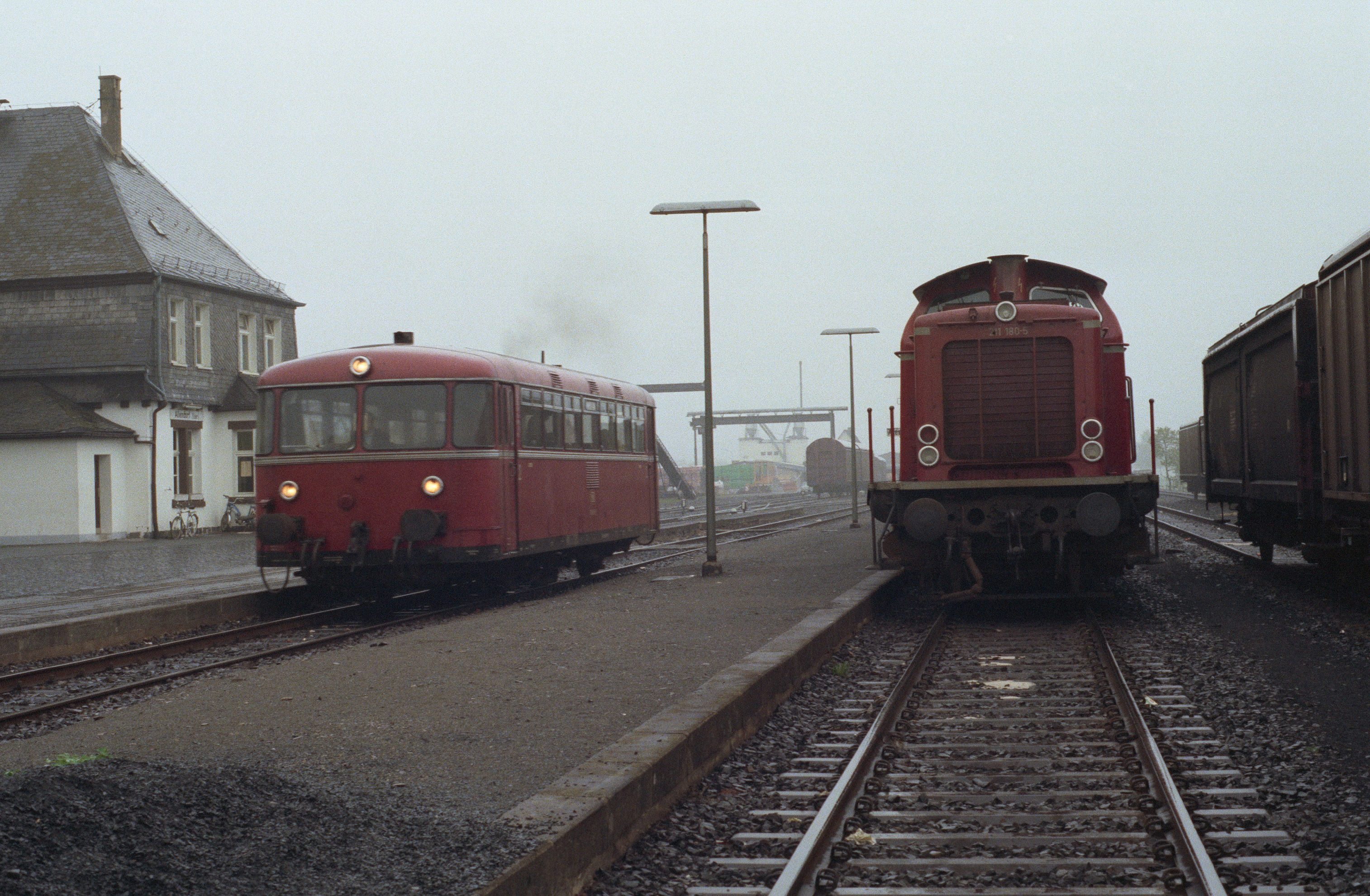 Kurz vor Einstellung des Personenverkehrs besuchte ich am 21. Mai 1981 die Edertalbahn Frankenberg - Bad Berleburg. In Allendorf gab es zudem noch umfangreichen Güterverkehr. Leider war das Wetter in dieser Woche grausig