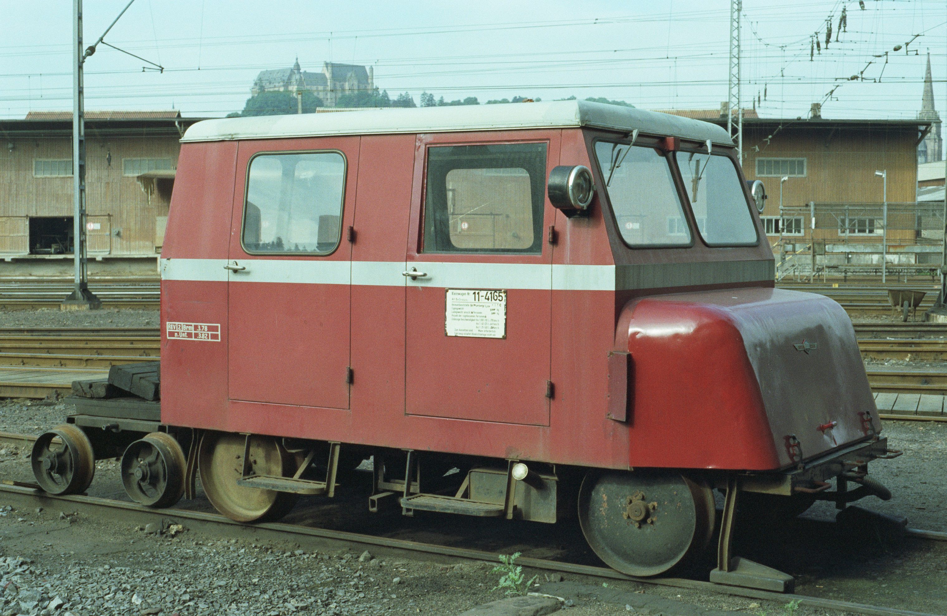 Ein Bahndienstfahrzeug Klv 11 im Juli 1981 im Bw Marburg