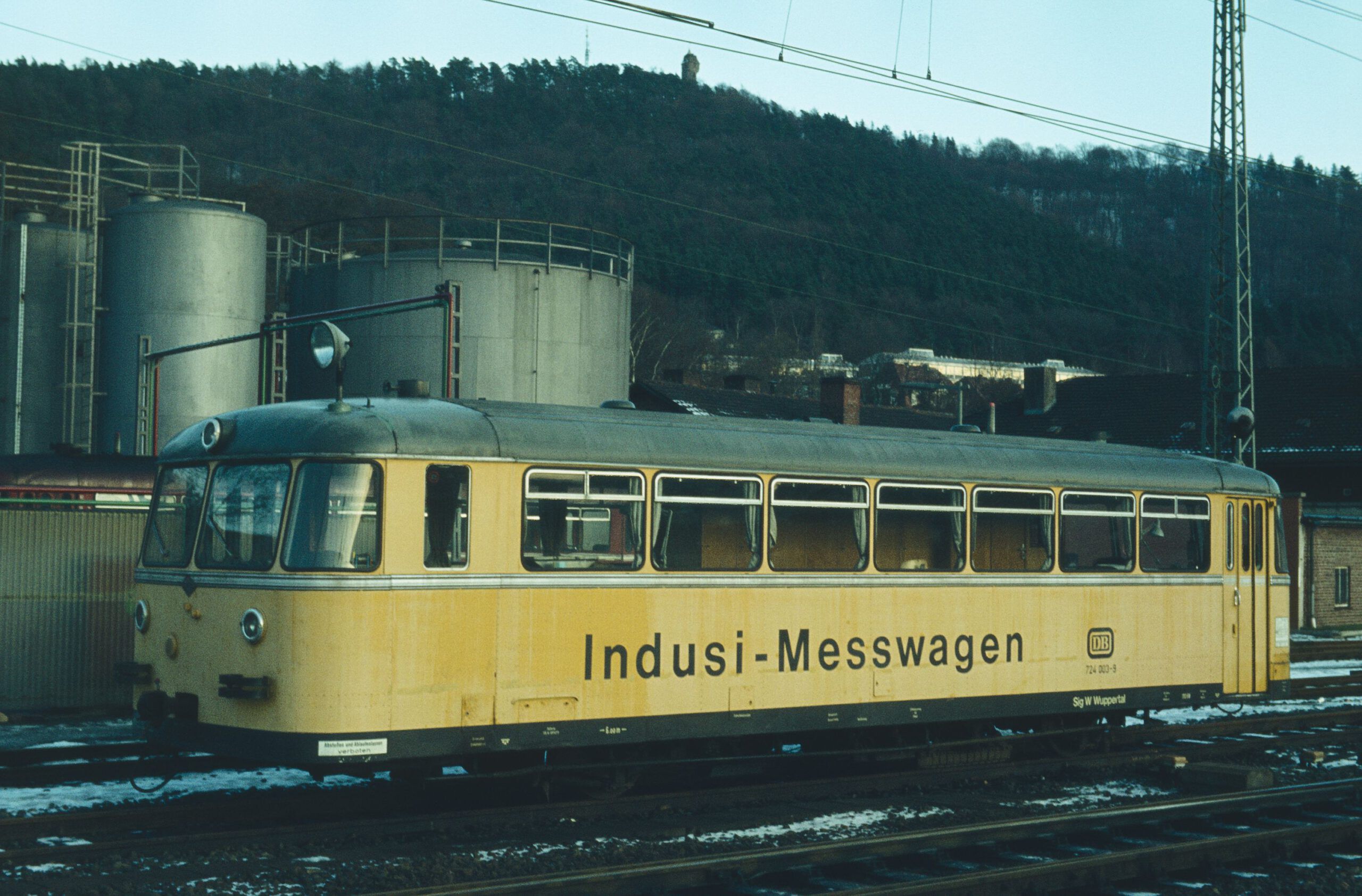 Das Messfahrzeug 724 003, abgestellt vor der Tankanlage des Bw Marburg