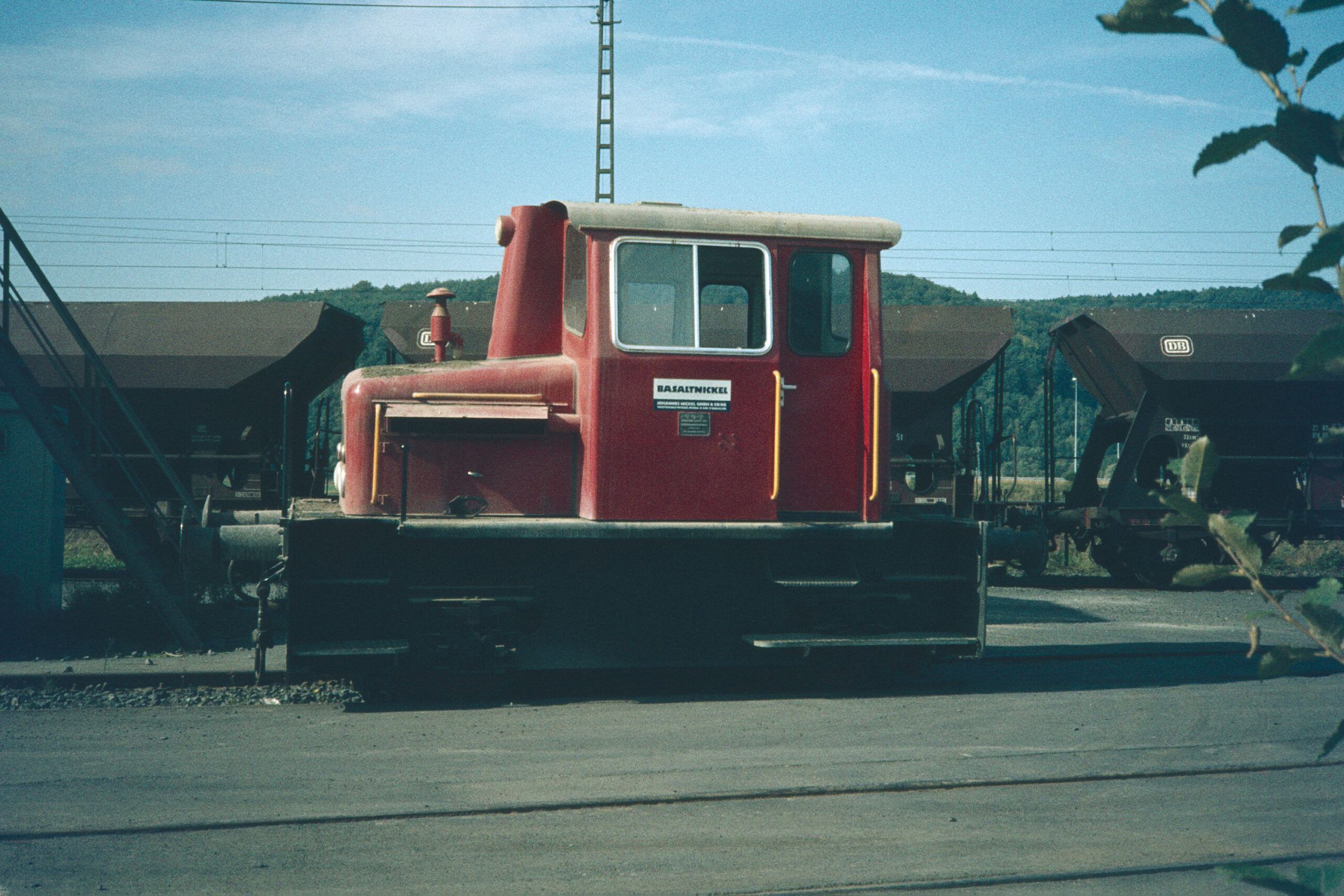 Im Sommer 1980 rangierte diese kleine Lok (O&K, F.-Nr. 26219) auf dem Betriebsgelände der Firma Basaltnickel in der Nähe des Bahnhofs Marburg-Süd