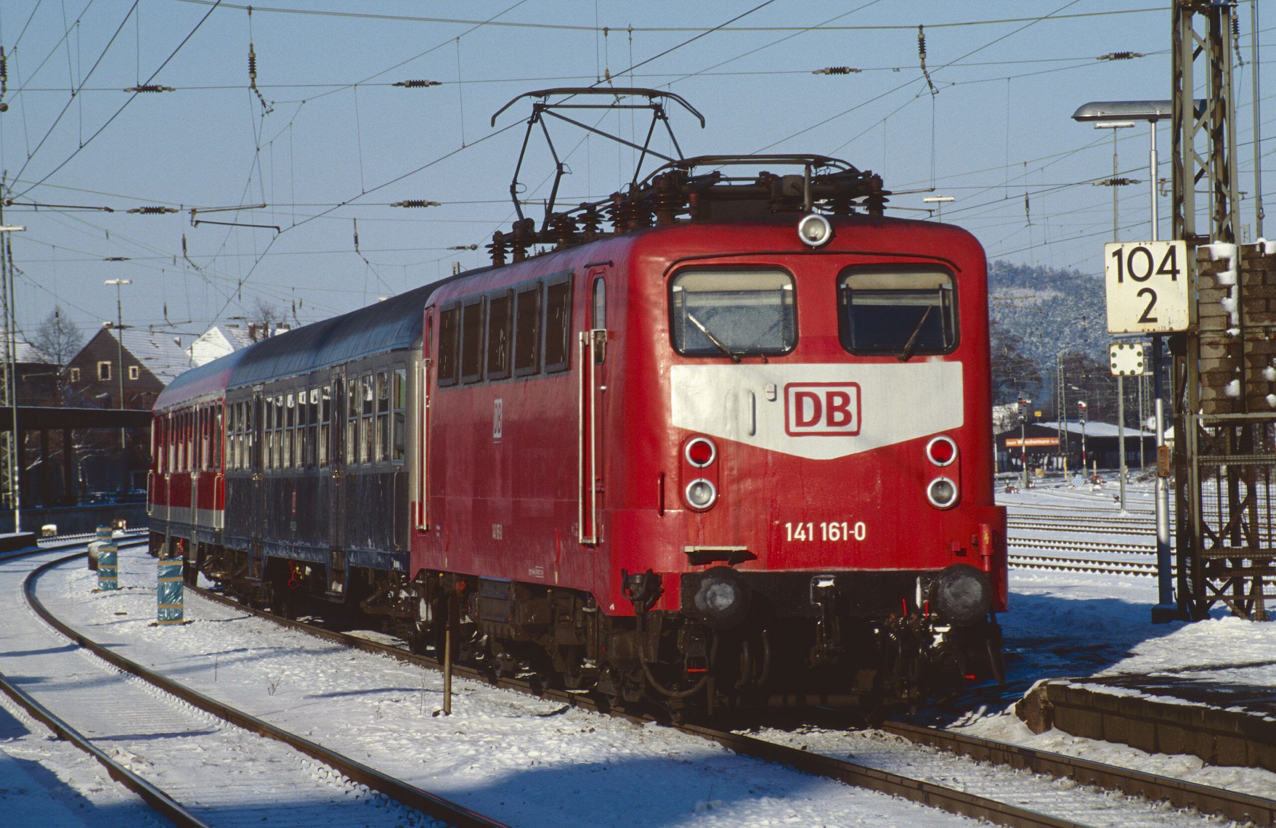 141 161 am 23. Dezember 2001 bei der Einfahrt in den Bahnhof Marburg
