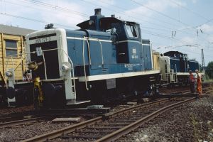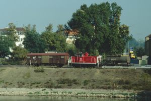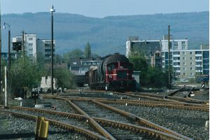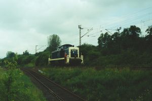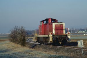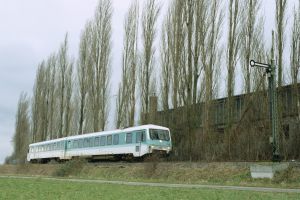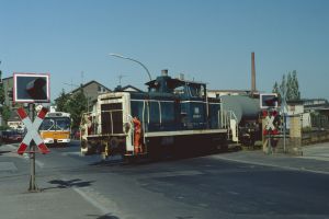 Nach dem unterqueren der A 66 bei Erbenheim erwischte ich 212 088 am 09. März 1983 auf dem Weg zu Flugplatz. Damals gab es an dieser Stelle nur spärliche Vegetation. Heute sind die Schienen abgebaut